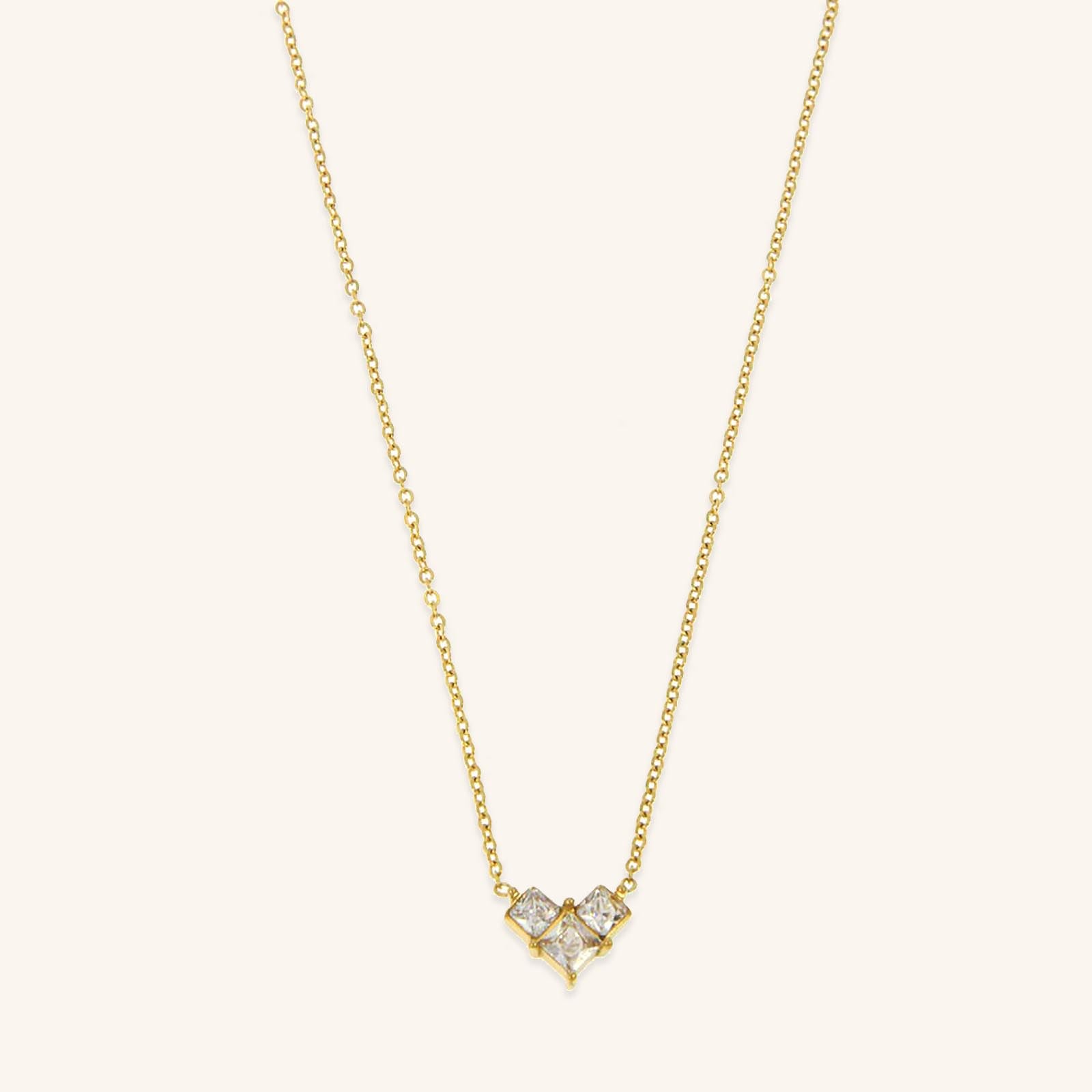 Crystal heart necklace in stainless steel and Zircon with a length of 40cm 5.5 cm of extension