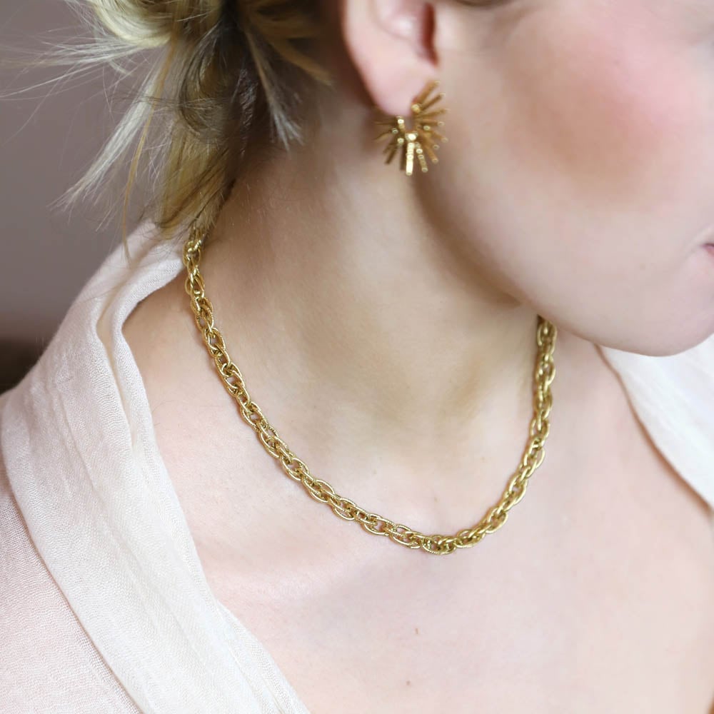 Genos necklace in stainless steel, double-link chain with textured finish.