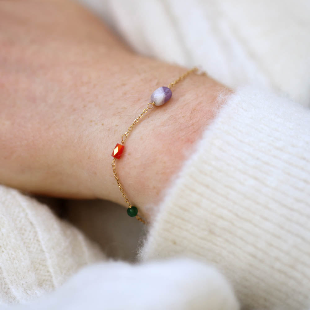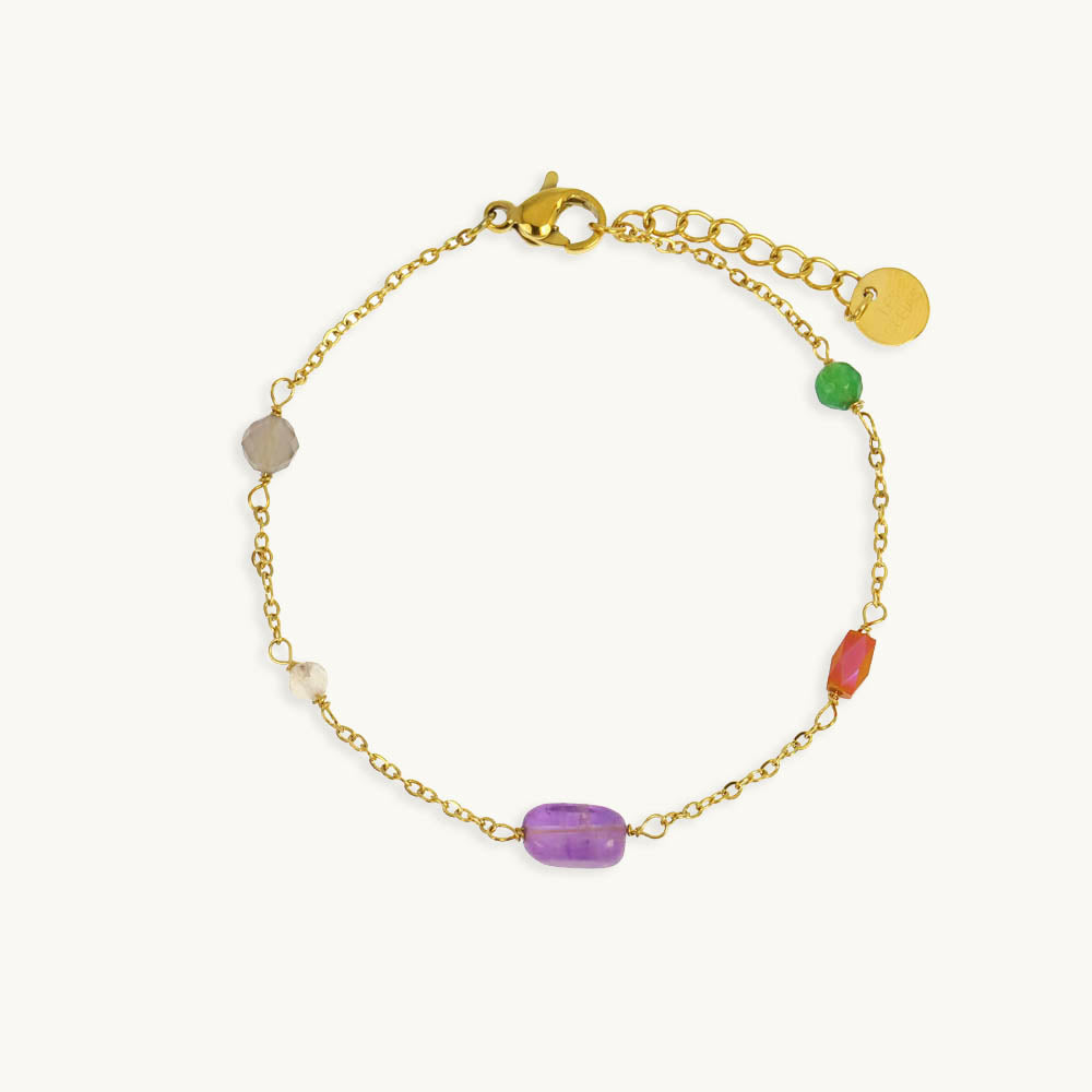 fine chain adorned with mixed gemstones.